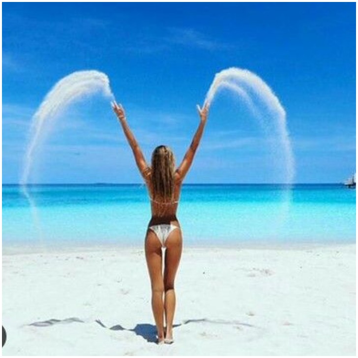 Stating the obvious, she looks fantastic and so does the photo! It also looks like the woman has wings that are creating a mesmerizing effect around her, giving the appearance of an angel. Love the overall vibe!