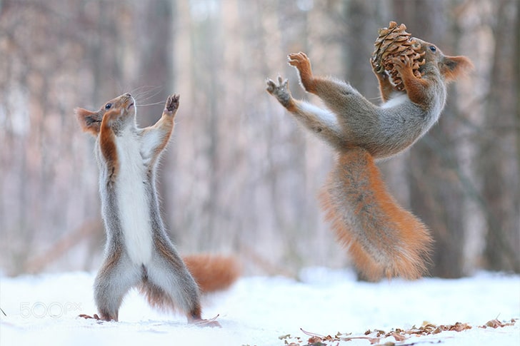 The ones above are a species of ground squirrel known for eating plants, seeds, roots, and nuts. They look like they are playing a championship game with an acorn as their ball. On the other hand, we believe they were just hanging around a tree waiting for acorns to fall down into their open hands.