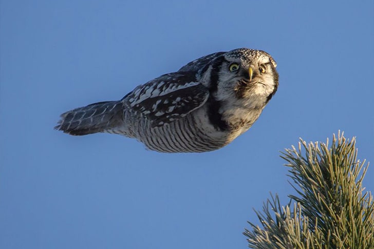 They are also silent fliers and they make virtually no noise thanks to their special feathers that can break down turbulence. Maybe the one above is making use of these special feathers to glide through the sky. We are used to birds of all kinds flying with their wings spread out but for some reason, this owl has its wings firmly by its sides.