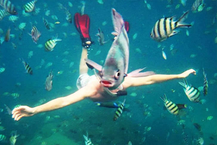 There are still people who prefer to go diving and they also come back with incredible photos like the one above. This guy went snorkeling and he probably had a buddy with him who couldn’t resist this picture-perfect moment. Just when the guy was swimming towards his buddy and a fish got close to the lens, his buddy snapped a picture. It looks like a half-man, half-fish hybrid.