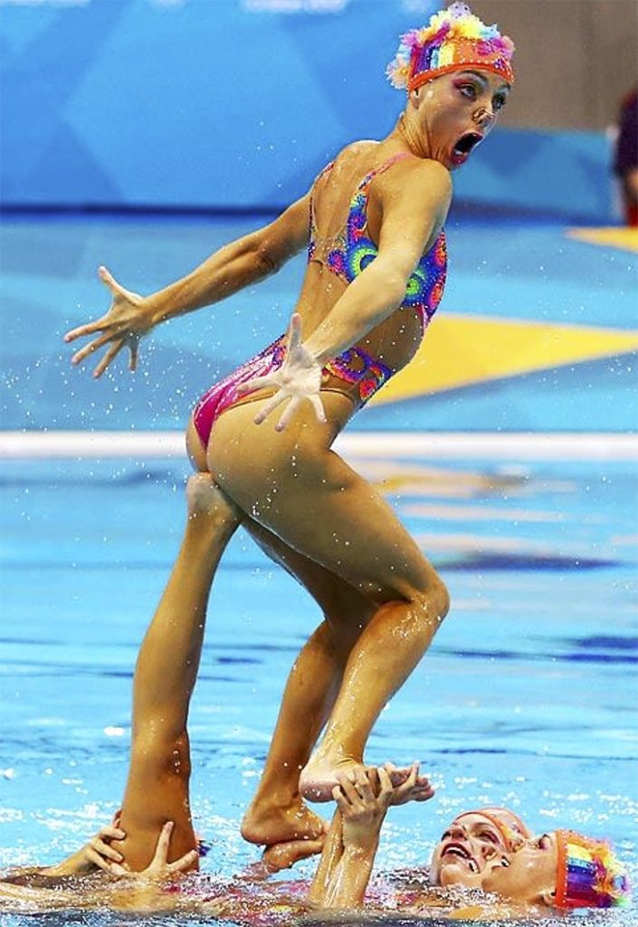 Aber es scheint so, dass derjenige, der diesen Wettkampf fotografierte, ein ebenso talentierter Mensch war wie die Schwimmerinnen. Er schaffte es nämlich, den Moment perfekt einzufangen, als die Frauen ihren nächsten Akt einleiteten!