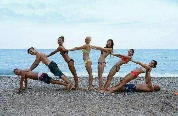 Dieses Bild im richtigen Moment aufzunehmen, muss viel Zeit gekostet haben, aber vor allem war es sicherlich schwierig, still in der Pose zu verharren, ohne zu fallen oder zu stolpern. Hut ab vor dieser Gruppe, die bewiesen hat, dass der Strand immer Spaß bedeutet!
