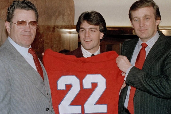 In a significant time in sports history, Donald Trump and coach Walt Michaels presented a jersey to star player Doug Flutie of the New Jersey Generals—a team Donald purchased for $9 million in September 1983. This marked his ambitious entry into the United States Football League (USFL).