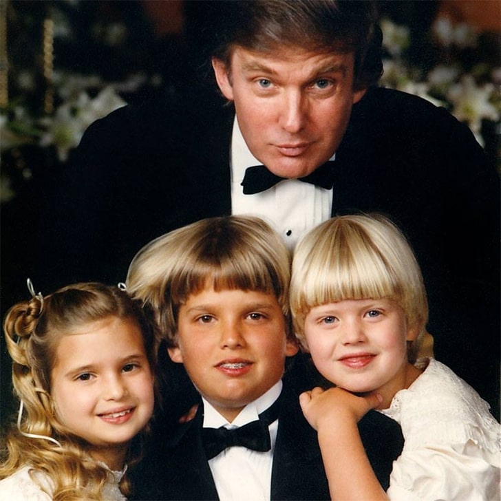 A charming portrait captures Donald Trump with his young children—Ivanka, Donald Jr., and Eric—each elegantly dressed, symbolizing their early introduction to the public eye. Little did they know, these siblings would hold prominent positions within the Trump Organization, continuing their father’s legacy in real estate.