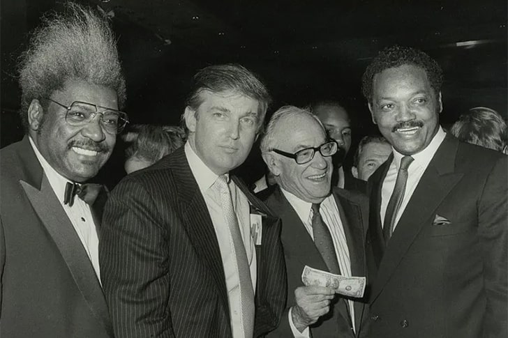 Donald Trump stands alongside Don King, Malcolm Forbes, and Jesse Jackson, each a titan in his respective field! Don King, known for his flamboyant promotion in the boxing world; Malcolm, the magnate behind Forbes magazine’s success; and Jesse, a revered civil rights leader and two-time presidential candidate, represent a spectrum of American success and influence.