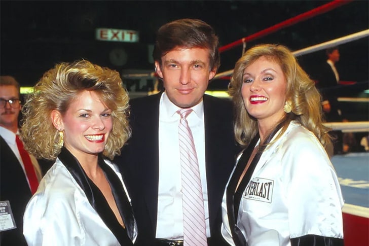During the electrifying Mike Tyson vs. Michael Spinks bout in Atlantic City, Donald Trump was captured in a memorable photo alongside the ring girls, who were dressed in sleek satin jackets bearing the “Everlast” logo. Sporting his usual suit and tie, his presence at this major sporting event highlighted his significant role in the boxing world, particularly through his promotion of high-profile fights at his properties.