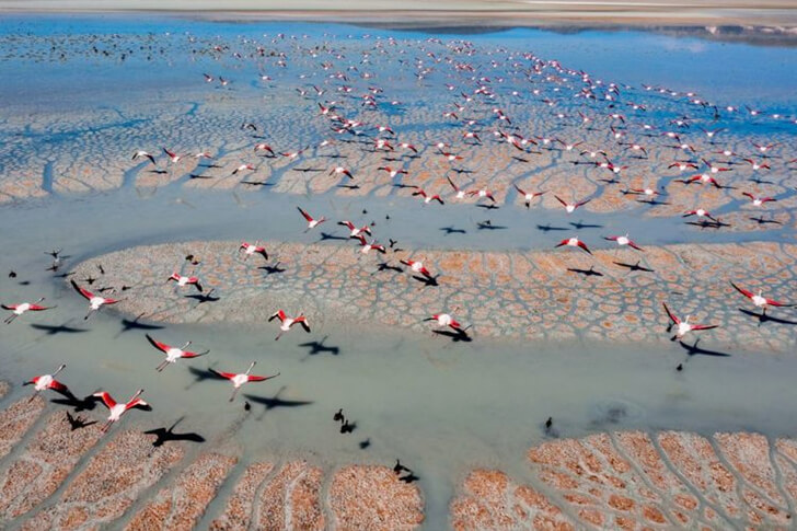 Drone Captures Flamingos in Peru’s Sechura Desert