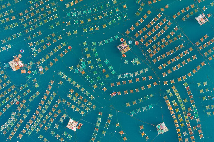 The 2018 Drone Awards showcased breathtaking aerial photos, and one standout image was a lobster village captured by amateur photographer Trung Phan Huy from Ho Chi Minh City. The village, located in the Hon Yen coastal area of Vietnam’s Phu Yen Province, features colorful floating cages. Villagers from the Commune tend to the floating farm using small barges, breeding baby lobsters that are shipped worldwide.