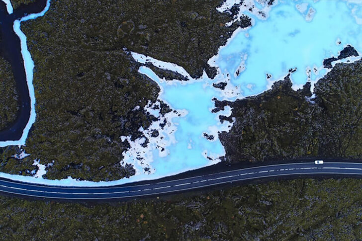 The Hubsan X4 H502S drone captured a breathtaking view of Iceland’s Blue Lagoon, a geothermal spa set in a lava field. The Blue Lagoon is supplied with water from the nearby Svartsengi geothermal power station, making it one of Iceland’s top tourist destinations. The spa formed naturally in 1976 and has since expanded to include a luxury hotel and restaurant.