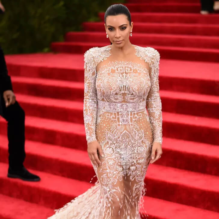 When Kim Kardashian stepped onto the 2015 Met Gala red carpet, people thought they were seeing double. She arrived in a custom white sheer gown strikingly similar to what fashion icon Cher wore to the 1974 Met Gala. Peter Dundas designed Kim’s modernized recreation for Roberto Cavalli.