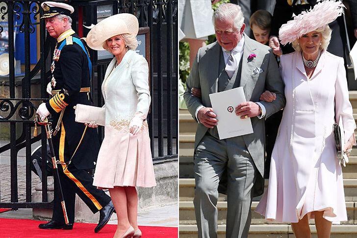 When attending Prince William’s ceremony, Charles chose the Royal uniform decked out with badges. Interestingly, his wife Camilla, Duchess of Cornwall, chose the exact same peach outfit for both nuptials. The hat she wore to Prince Harry’s nuptials is the only thing that seems to have changed.
