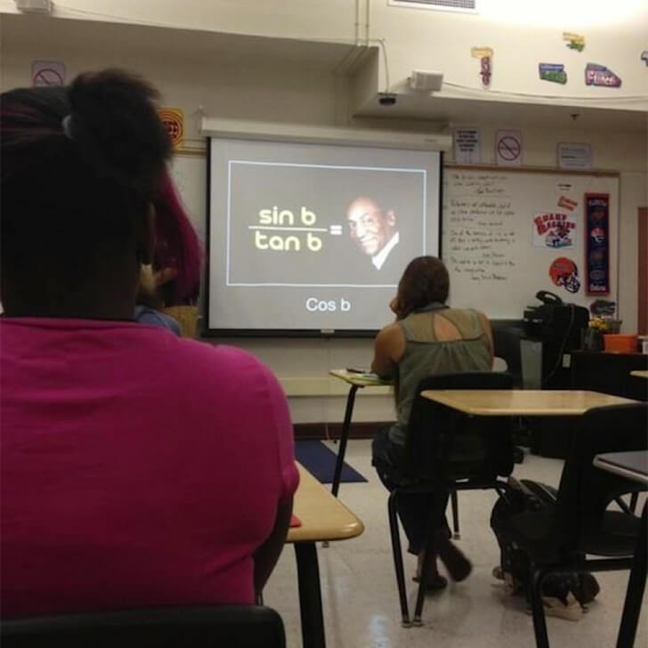 This teacher, perhaps being a huge fan of the famous actor-comedian Bill Cosby, saw a chance to use him in trigonometry. We don’t think many would have thought of this brilliant idea. Okay, what other chapters can the tutor teach that way, and what characters and pictures will be used?