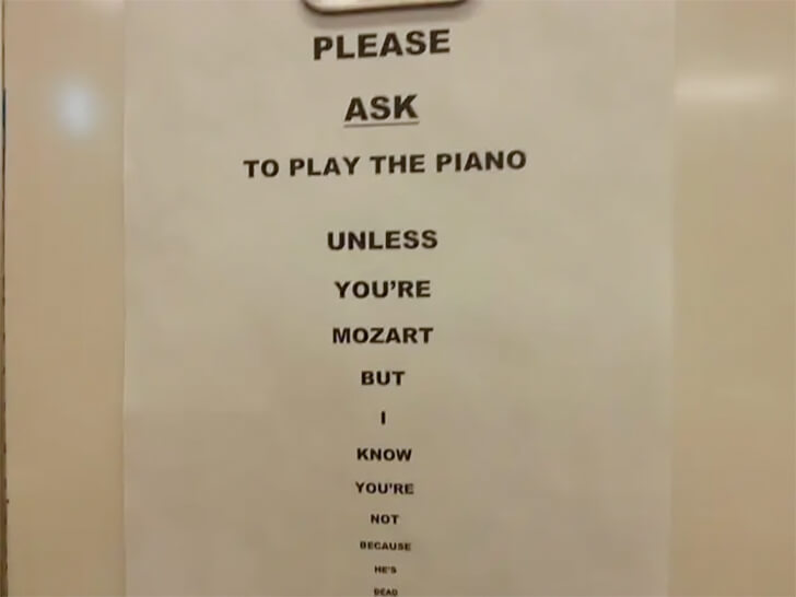 The music hits us differently, especially from different musical instruments. Some people are too touchy to pass by a piano. So, this music teacher decided to avoid the old, traditional, and boring “do not touch” sign. Instead, he posted this funny board, knowing full well that all students would have to ask him for permission to play the piano.