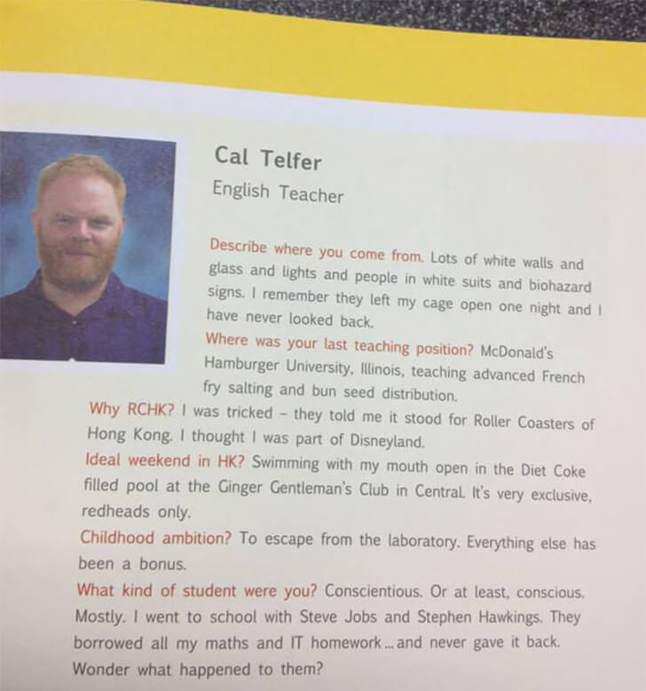 Ideally, this English teacher named Cal Telfer deserves a standing ovation for being the most savage teacher in the RCHK. According to the note above, this guy doesn’t need any introduction because he’s more than anyone can handle.