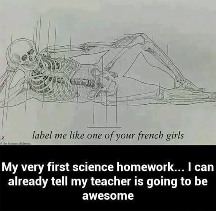 This tutor presented this assignment to the students, instructing them to label it like one of their French girls. It’s a dialogue part of an intimate session between Jack and Rose. She made sure that science and the boney structure sounded funny and creepy. We are positive that they successfully labeled her!