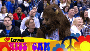 This Kiss Cam moment is a true crowd-pleaser! A brown, hairy mascot with horns found himself on the receiving end of an adorable kiss from a female spectator. The surprise smooch left the mascot so thrilled that he immediately pumped his hands in the air as if he’d just won the championship.