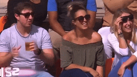 When the Kiss Cam zeroed in on this trio, the girl in the middle instantly knew what was up. The guy wasn’t looking her way—his sights were set on her friend! With no other option, she quickly leaned back and hid behind her friend, making room for the expected smooch.