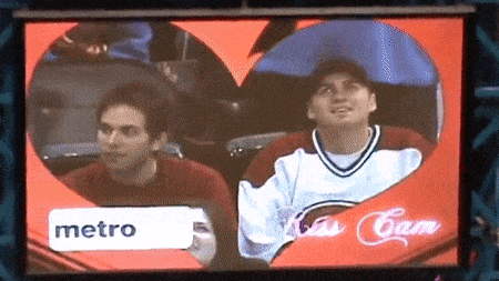 When the Kiss Cam focused on two male Canadian fans, things got hilariously awkward. The guy on the left quickly made it clear that smooching his buddy wasn’t on his to-do list, judging by the mix of laughter and mild disgust on his face. His friend found the whole situation amusing but wasn’t eager to lean in for the kiss either.