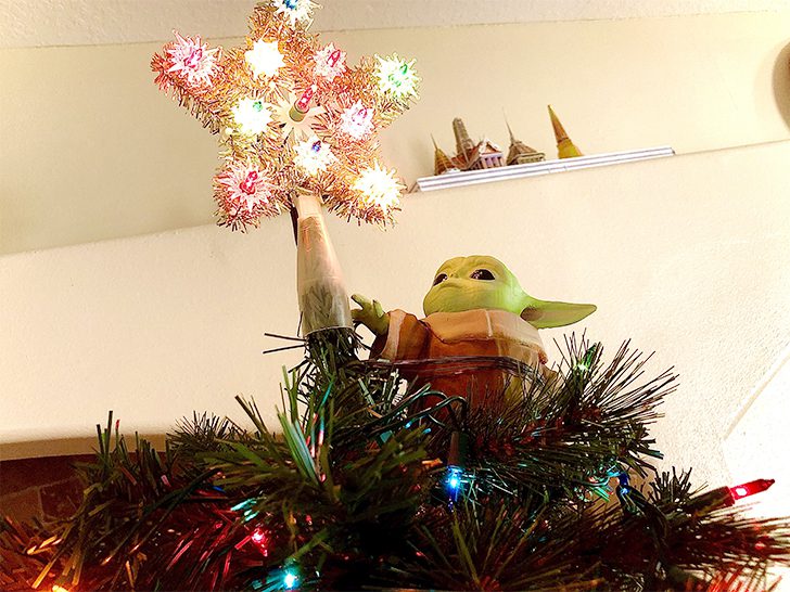 It’s not every day you see intergalactic cuteness lighting up a Christmas tree. From the twinkle of the star to Grogu’s curious gaze, it’s clear this family knows how to combine holiday spirit with a bit of sci-fi. One thing’s for sure: this tree topper is stealing the holiday show.