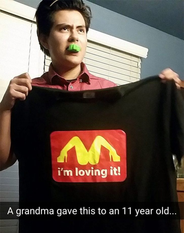 It’s the ultimate mix-up: a shirt far too edgy for its intended recipient. Whether Grandma thought it was trendy or just grabbed it on sale, the awkwardness is real. Let’s hope this guy has the humor to appreciate the memory—and a wardrobe ready for damage control.