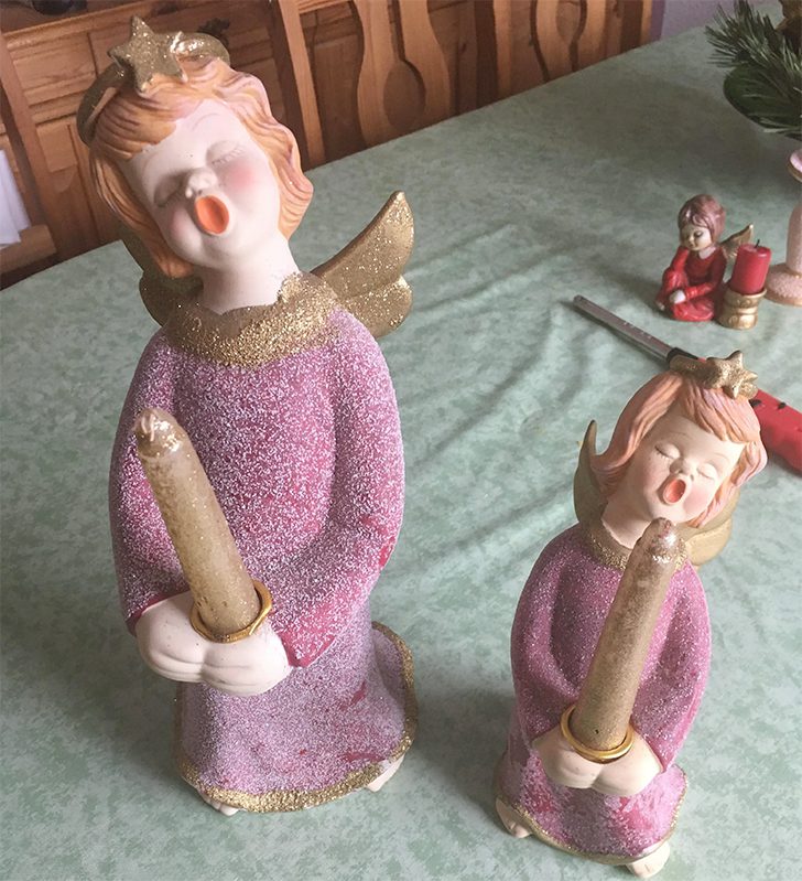Well, nothing says “holiday spirit” like sparkly angels holding candles that make you look twice. At first glance, they seem innocent enough, but someone didn’t think these design choices through. Glitter, pink robes, and questionable proportions—this is a display piece that tells a story, just maybe not the one intended.