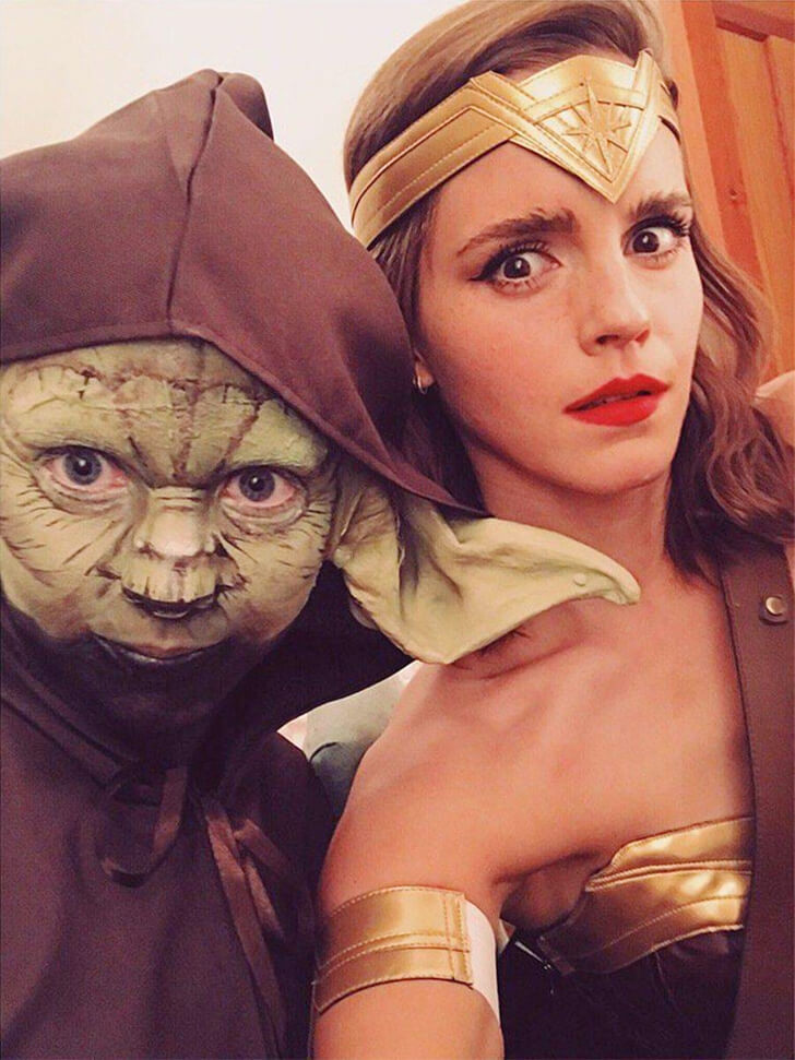 Emma Watson is a proud feminist activist and has always stood up for women’s rights. No wonder she dressed up as the powerful Wonder Woman for Halloween. Here she is pictured next to Yoda, and the photo was taken at the birthday party of the author of the “Harry Potter” series, J.K. Rowling.