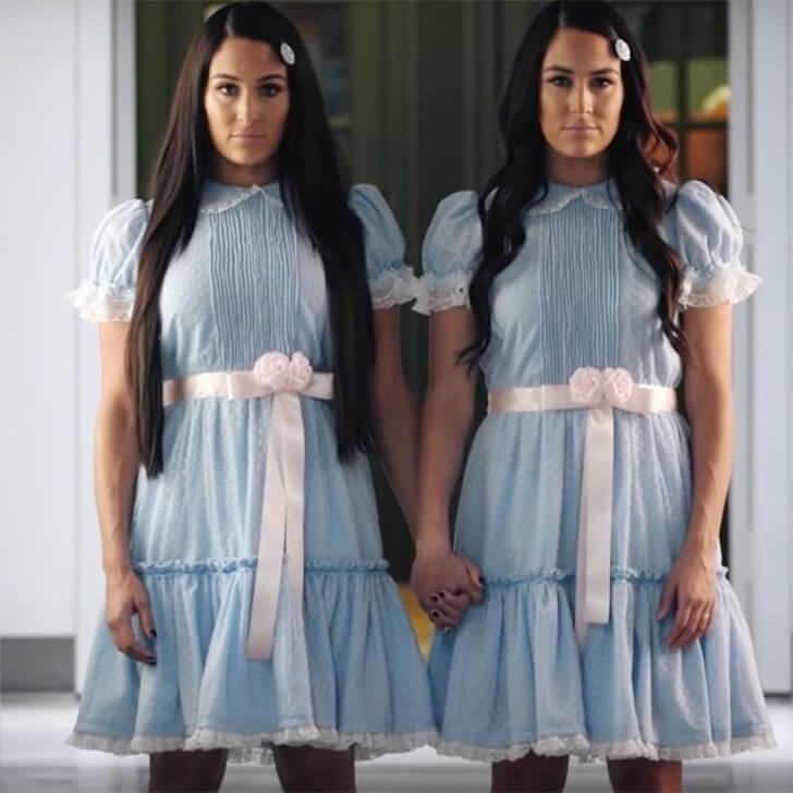 It turns out that celebrities seem to love taking inspiration from the movie just as much. Nikki and Brie Bella, former Divas Champions from World Wrestling Entertainment, dressed up as the creepy ghost twins to attend a trick-or-treat bash. Although these WWE wrestlers had retired, their fans were thrilled to hear of their return in 2022 for the Women’s Royal Rumble.