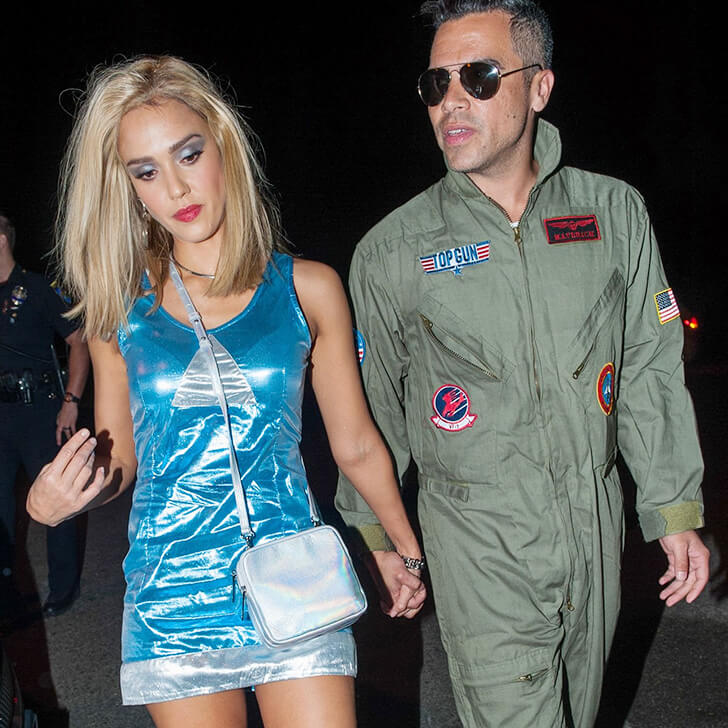 This picture was taken at the 2015 bash, and it seems like back then, Alba didn’t care much for the spooky season; she’s dressed up as Romy from “Romy and Michele’s High School Reunion.” Her husband came as Maverick from “Top Gun.” They’ve definitely gotten better with their costumes since then, and in 2021, they dressed up as cute lions along with all three of their kids.