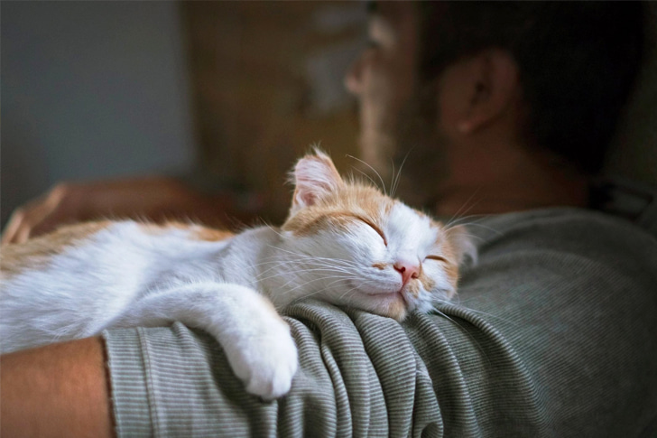 Curled up on their human’s chest, purring away, is just the epitome of cat love! When a pet chooses you over the plushest bed, it’s not just about comfort. Your chest provides warmth, the rhythmic heartbeat offers a soothing lullaby, and breathing mimics the calming purrs of fellow cats. It’s their cozy sanctuary of trust and bonding!