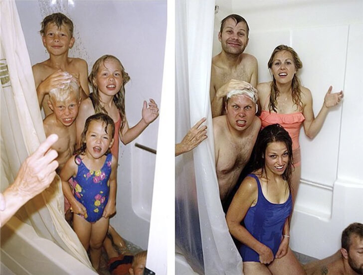 The first photo was taken in 1993, and the other was shot in 2015, which means 22 years have passed. According to She Knows, siblings taking a bath together has perks, including building connections and conserving water. However, this is OK up to a certain point, and experts suggest stopping this habit when they reach four.