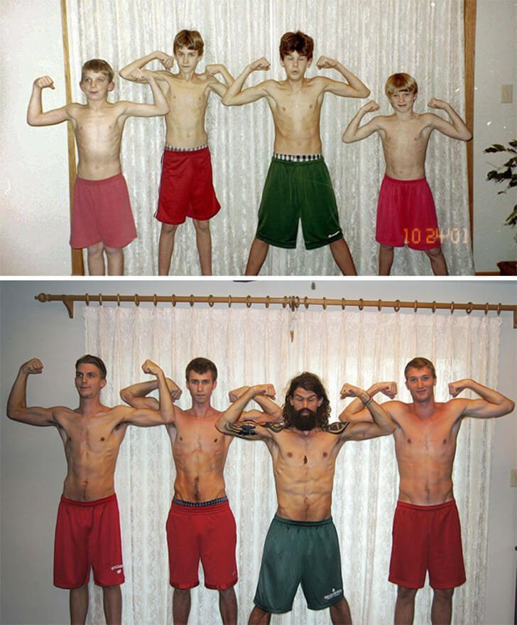 Puberty hit these kids nicely! We surmise that even when they were young, these lads had always wanted to be fit so they made it a point to work on their bodies while growing up. We can tell that the eldest in green shorts motivated his siblings to achieve better versions of themselves.