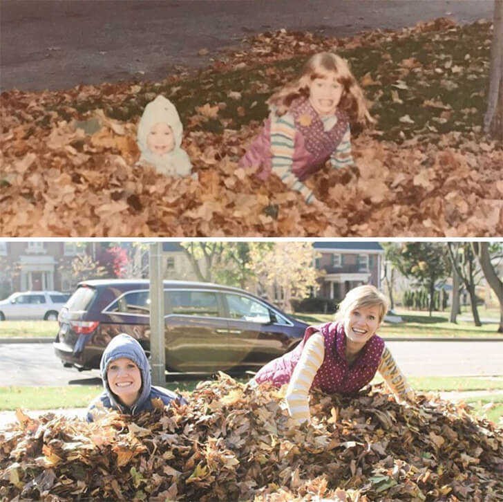 The first thing we noticed from these images is how the quality of the photos changed for the better through time. As per Hayley German Fisher, one of the ladies’ Instagram account, the previous shot was taken in 1981 whereas the other happened in 2016. What didn’t change was their enthusiasm for fall.