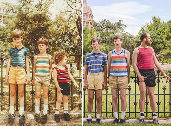 Kudos to these guys for having done a great job in recreating their childhood photo — from the outfits down to the pose, they nailed everything! If you compare the two images carefully, you’ll see that the youngest child became the tallest and the eldest grew the shortest.