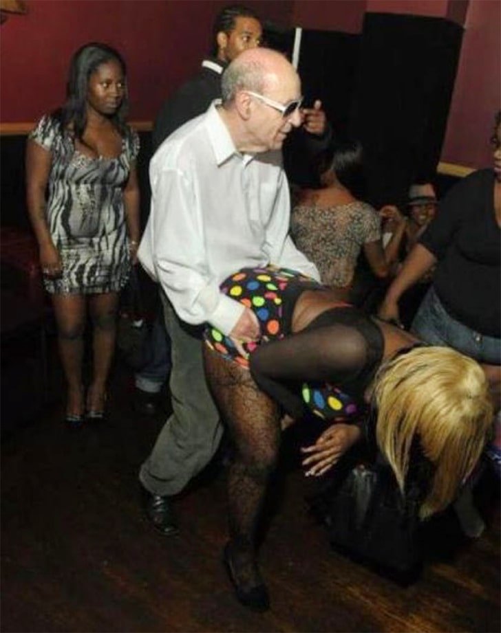 It looks like this senior citizen has sought entertainment elsewhere. He is partying it out with a girl much younger than him in physical years, though he will argue they are similar in mental ages. We hope he did a few stretches before attempting to break out on the dance floor. We don’t want a broken hip.