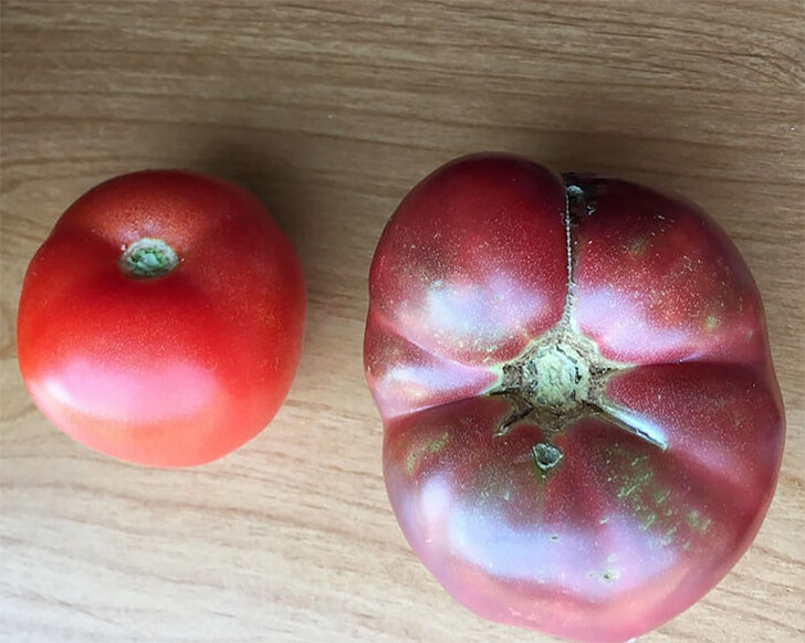That’s why the tomato on the left looks more appealing than the one on the right, which was grown from a 150-year-old heirloom believed to be Cherokee Purple seeds. Thus, the fruit was more prone to physical defects. The good news, though, is that these shortcomings have no impact on the tomato’s taste.