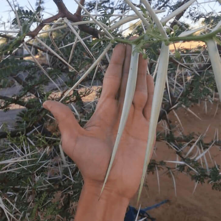 No, you’re not looking at tiger fangs or the teeth of a now-extinct giant predator. These are just the thorns of the Vachellia erioloba (also called the Acacia erioloba), a tree that thrives in the harshest conditions. It grows in South Africa, where it’s a protected tree and other countries in the continent.