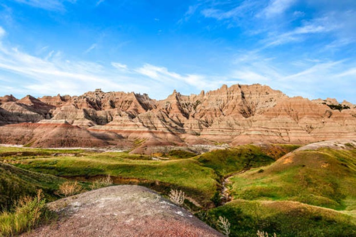 The Badlands national park spreads out over 244,000 acres in southwestern South Dakota. It is famously characterized by rugged topography and rich wildlife, which is its prime attraction. The national park comprises widespread prairie land interspersed with rocky scarps and spires.