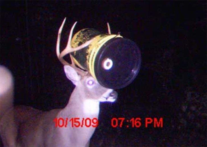 Seine Neugierde ist diesem Reh wahrscheinlich zum Verhängnis geworden. Es hat das Fass sicherlich nur begutachten wollen und dann hat es sich in seinem Geweih eingeklemmt. Anders können wir uns dieses Bild, aufgenommen mit einer aufgestellten Wildkamera, nicht erklären. Nun ist das Reh in einer sehr ungünstigen Situation und trägt eine schwere Last mit sich herum. Wir hoffen, dass der Förster, der die Kamera aufgestellt hat, die Bilder zeitnah sichten und das Tier schnell vom Fass befreien konnte. Ob die Menschen, die das Fass in der Natur entsorgt haben, auch von einer Kamera aufgenommen wurden, wissen wir zwar nicht. Aber wir hoffen, dass sie ihre gerechte Strafe bekommen haben.