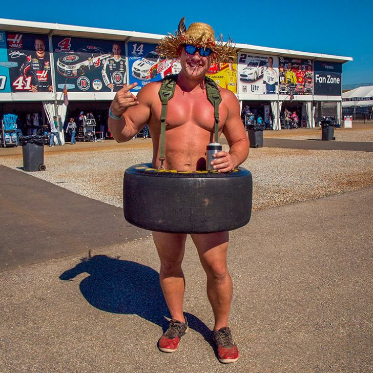 This guy seems to be an avid fan of the NASCAR racing series by the looks of his outfit. We doubt his hat and sunglasses will keep him safe from the noon heat, as people can easily return home with sunburn in such cases. It’d be best to use sunscreen as protection regularly while being in the sun.