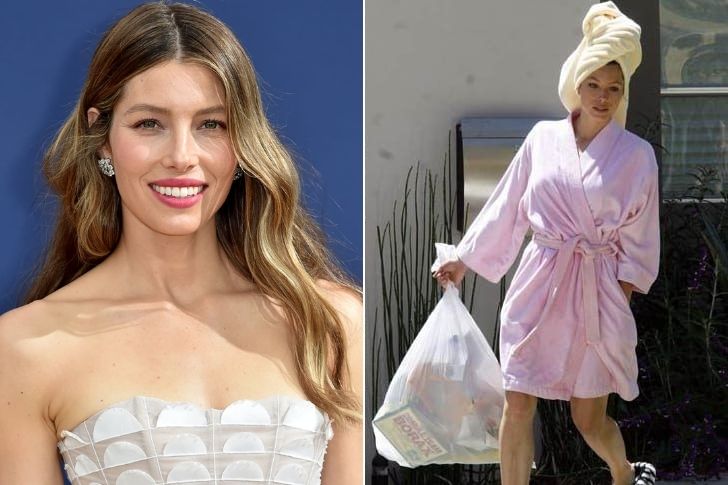She is known for her versatile, glamorous looks, but one cannot seem the same all the time. Fans forget that stars can run errands just like us. Someone caught Biel on camera while out throwing the garbage in 2019, looking very much like an everyday person. Though we must admit, she still carries that bathrobe and towel with style.