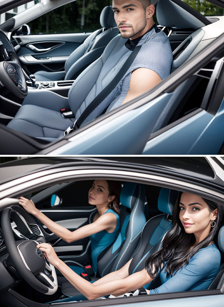 At least the woman in the other frame has her hands on the wheel despite it being longer than humanly possible. It seems AI considers casual to mean fully relaxed, but when it comes to driving, one can never be that lax. And everyone would feel much safer if they kept their eyes on the road.