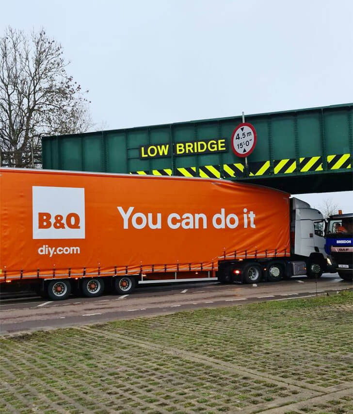 In a twist of motivational irony, a truck emblazoned with “You can do it!” finds itself in a jam—literally wedged under a low bridge. The glaring contradiction between the message and the predicament is nothing short of poetic. While a “can-do” attitude might propel us to reach for the stars, the cold, hard steel of the bridge whispers, “Not so fast, buddy!”