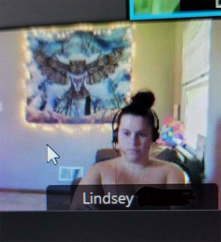 Let us welcome Lindsey, the modern-day Lady Godiva of Zoom calls! There she was, hair swept up in a nonchalant bun, headphones as her sole accessory, while her colleagues might be getting more “insight” into her life than she intended. The saving grace? A strategically placed username that acted like a digital fig leaf.